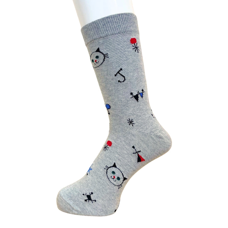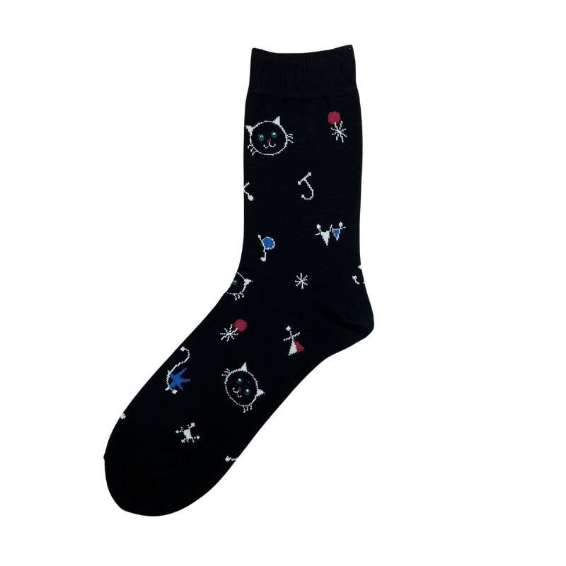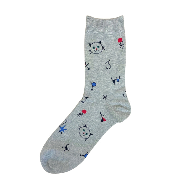 アイコンの猫をアート風にデザインしたシーズナブルなクルー丈ソックス。おしゃれな靴下です。